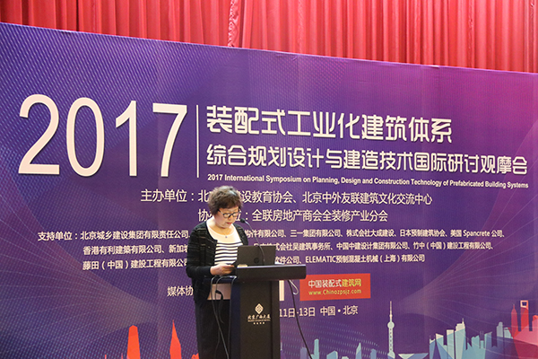 為充分學習和了解德國、日本、新加坡、美國等發(fā)達國家工業(yè)化建筑體系,理順工業(yè)化施工發(fā)展思路,切實提高裝配式建筑從業(yè)人員的實踐水平,滿足裝配式持續(xù)發(fā)展的人才需求,提高協(xié)會在建筑行業(yè)內(nèi)的影響力,北京市建設教育協(xié)會聯(lián)合北京中外友聯(lián)建筑文化交流中心有限公司于2017年5月11日至5月13日在北京市廣西大廈共同舉辦“2017裝配式工業(yè)化建筑體系綜合規(guī)劃設計與建造技術國際研討觀摩會”。 本次會議共邀請到來自國內(nèi)外裝配式建筑領域內(nèi)的11位資深專家,分別從裝配式建筑工程籌劃、工程設計、預制構件設計與生產(chǎn)工藝、施工技術、施工管理與質(zhì)量控制、綠色施工等方面進行了深入的剖析與講解。來自全國建筑行業(yè)企事業(yè)單位、培訓機構代表共計170余人參加了會議。特別是北京建設教育聯(lián)盟的19家理事單位,積極踴躍報名參加本次會議。 5月11日上午8點50分,大會正式開始。首先北京市建設教育協(xié)會副會長、北京建設教育聯(lián)盟副理事長甄蘭瓊代表主辦方對北京市建設教育協(xié)會及北京建設教育聯(lián)盟的工作進行簡要介紹,同時感謝北京市住房和城鄉(xiāng)建設委員會、河南省建設教育協(xié)會、山西省建設教育協(xié)會和建設教育聯(lián)盟19家理事單位對這次觀摩會的支持。