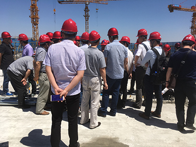隨后大家參觀了由北京城鄉(xiāng)建設集團有限責任公司承建的臺湖保障房項目。在項目現(xiàn)場,大家就該項目的管理、技術等方面提出疑問,項目接待人員進行了耐心詳細的解答。
