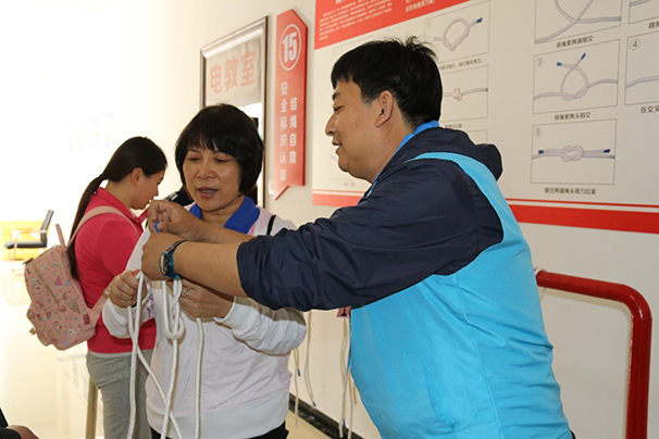 體驗活動在引導(dǎo)教師的帶領(lǐng)、指導(dǎo)下,分兩部分進(jìn)行體驗: 首先,觀看了用電安全、機械操作等安全知識教育宣傳片,讓學(xué)員們對各方面的安全知識有初步的了解; 其次,參加活動學(xué)員分組進(jìn)行各項設(shè)施的體驗活動。體驗分為室內(nèi)體驗區(qū)和室外體驗區(qū)。在室內(nèi)體驗區(qū),指導(dǎo)教師向體驗學(xué)員詳細(xì)講解了館內(nèi)設(shè)置的安全體驗項目的用意及用法,其中有安全帽撞擊、安全鞋沖擊、結(jié)繩自救、電梯墜落、綜合用電、結(jié)繩自救、醫(yī)療急救、火災(zāi)逃生、滅火器使用等20多項體驗內(nèi)容。學(xué)員們聽完講解,親身體驗了這些模擬項目,在體驗中學(xué)會了安全帽佩戴、安全鞋等安全設(shè)施的使用知識并認(rèn)識到這些設(shè)施的重要性,親身體驗了安全保護設(shè)施使用不當(dāng)?shù)奈:Γ粚W(xué)習(xí)了電梯墜落、發(fā)生觸電事故、火災(zāi)事故時的自救方法等,意識到正確使用安全防護用品、正確的自救方法是保障人身安全的重要措施。在室外體驗區(qū),學(xué)員們逐個體驗了墻體倒塌、平衡木、臨邊防護、欄桿傾倒、安全帶使用等30多個生產(chǎn)作業(yè)時易發(fā)安全事故的體驗項目,學(xué)習(xí)了墻體倒塌時逃跑的正確路線、平衡木上行走的正確姿勢、臨邊防護及欄桿傾倒時的緊急逃生方案、安全帶的使用方法和必要性等安全知識。整個過程,學(xué)員們積極參與其中,認(rèn)真聆聽老師的講解,并按照老師的指導(dǎo)完成各項體驗。